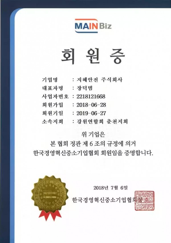 MAINBIZ 협회 회원사가입 페이지 정보 작성자 최고관리자 작성일18-07-11 11:19 조회3,039회 댓글0건 관련링크 이전글 다음글 목록 본문 경영혁신형 중소기업(MAIN BIZ) 인증을 받고 협회 회원사로 가입되었습니다. 댓글목록 등록된 댓글이 없습니다. 이전글 다음글 목록