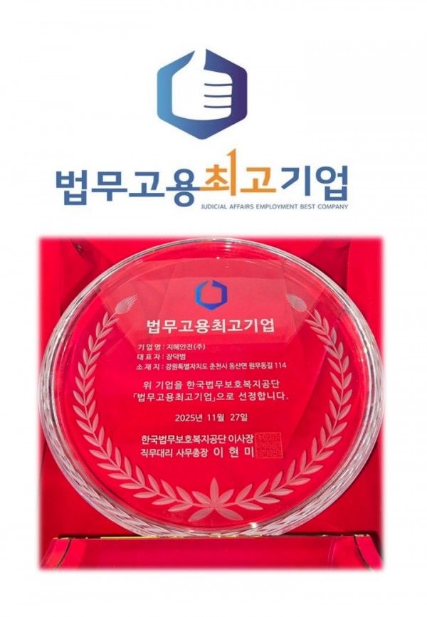 한국법무보호복지공단(이사장)은 지난 11월27일(목) 편견 없는 고용으로 출소자 채용에 힘쓰고 있는 지혜안전(주)(대표 장덕범)를