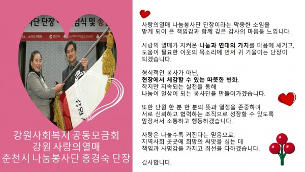 강원 사랑의열매 춘천시 나눔봉사단 단장(홍경숙)취임